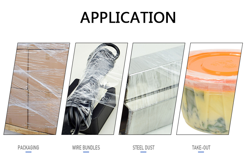 The film is widely used in goods pallet packaging, such as electronics, building materials, chemicals, metal products, auto parts, wire and cable, daily necessities, food, paper and other industries of the bundle packaging.